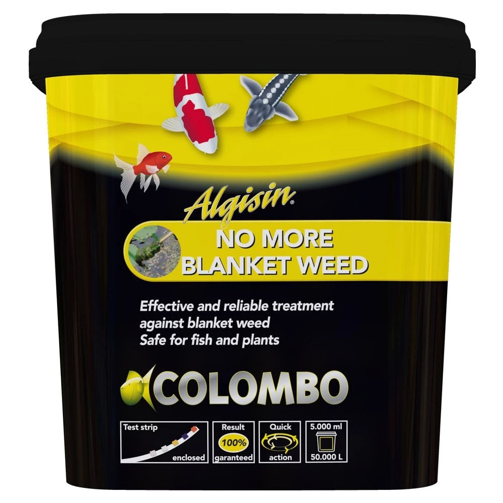 Colombo Algisin is an effective, fast acting treatment for blanket weed in ponds. Thanks to the powerful active ingredients, Algisin quickly gets to work on the blanket weed. A few days after Algisin has been applied, the remains of the blanket weed can be removed with a fine coarse net. Any further remains will be decomposed by bacteria and collected in the filter. Algisin is safe for fish and plants, when dosed correctly making Colombo Algisin the perfect solution for troublesome blanket weed in fish ponds.