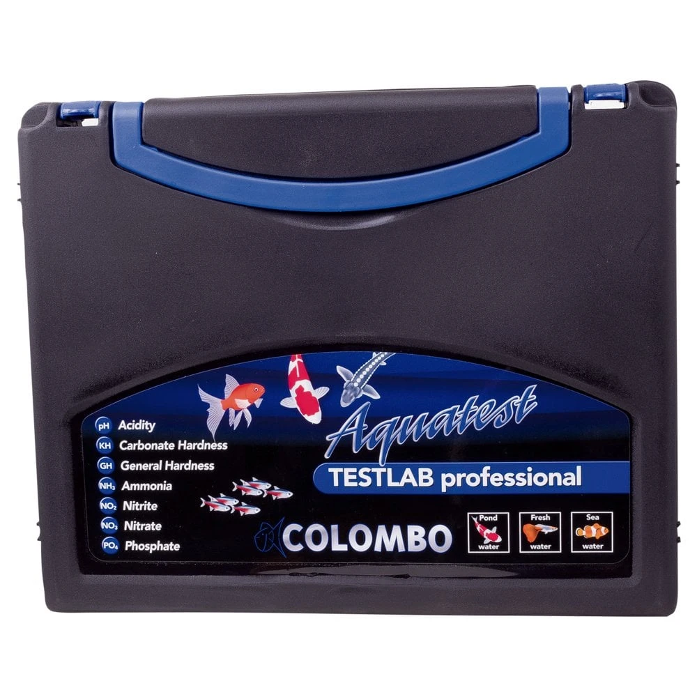 The Colombo Aquatest Test Lab Professional provides a complete test kit for the 7 most important water parameters including Ammonia, Nitrite, Nitrate, pH, KH, GH and Phosphate. The Colombo Test Lab comes supplied in a carry case and includes professional dripping tests for testing the water in ponds and aquariums. The Test Lab’s contents includes test tubes, syringe, dosing spoon, reagents, colour charts and instruction manual. Regular testing using the Colombo Test Lab will help ensure your pond or aquarium is kept in tip top condition. Healthy water equals healthy fish.