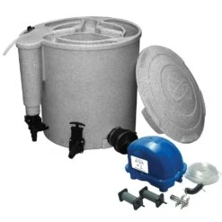 Water from the pond enters the EazyPod Air via the inlet and then flows around the circumference of the outer chamber of the EazyPod Air, passing through the stainless steel grill causing many of the larger solids to be filtered out and settle in the base of the outer chamber. This is the first stage of mechanical filtration. As water enters the central chamber, through the stainless steel grill, the fine smaller solids become trapped in the mass of K1 Micro. Bio-films build up on the protected surface area within each piece of media, allowing biological filtration to take place. After passing through the K1 Micro, the clean water then rises and overflows into the inner return pipe and flows back to the pond via the outlet. The EazyPod Air is incredibly simple to clean. The connected air pump is used during the cleaning cycle to agitate the K1 Micro to free up any debris and waste that has built up within the filter. A 70 litre per minute air pump is recommended for use during the cycle cleaning. *Only EazyPodAir and EazyPod Complete models are supplied with a 70 litre per minute air pump and accessory kit.