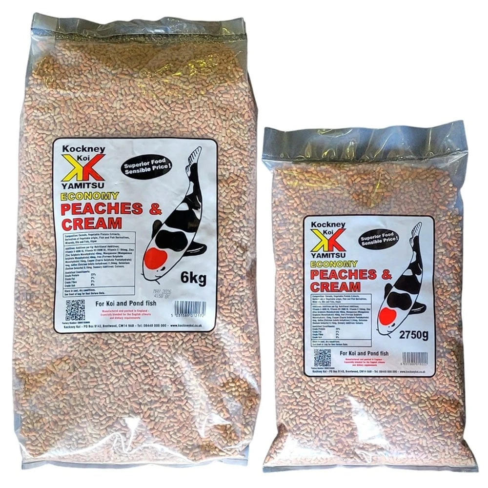 Kockney Koi Economy Peaches and Cream is a complete two colour floating food stick that provides a staple diet that fish will love at an affordable price.