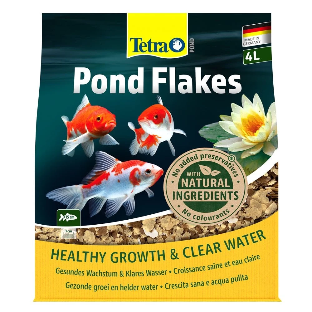 Tetra Pond Flakes provide an easy to digest complete food for all small pond fish. They contain the patented Active Formula for a healthy immune system, energy and vitality.
