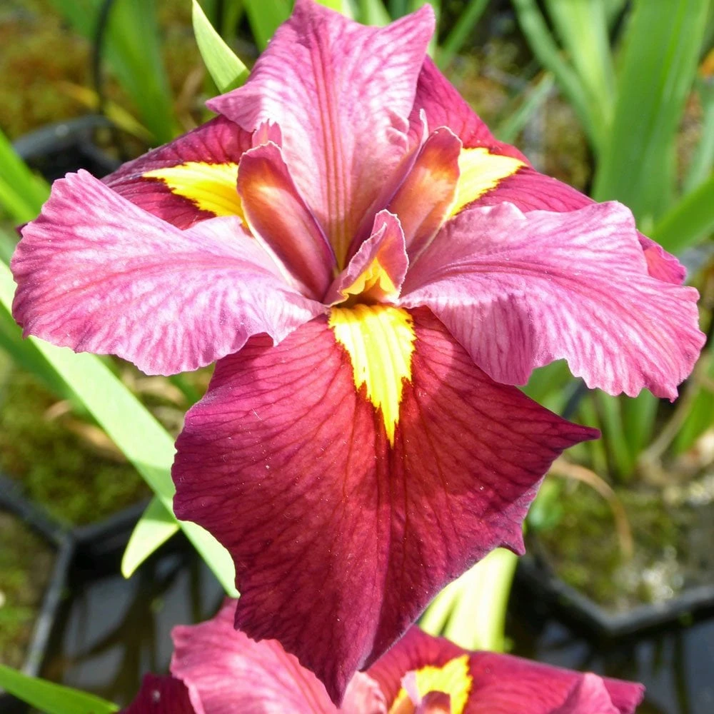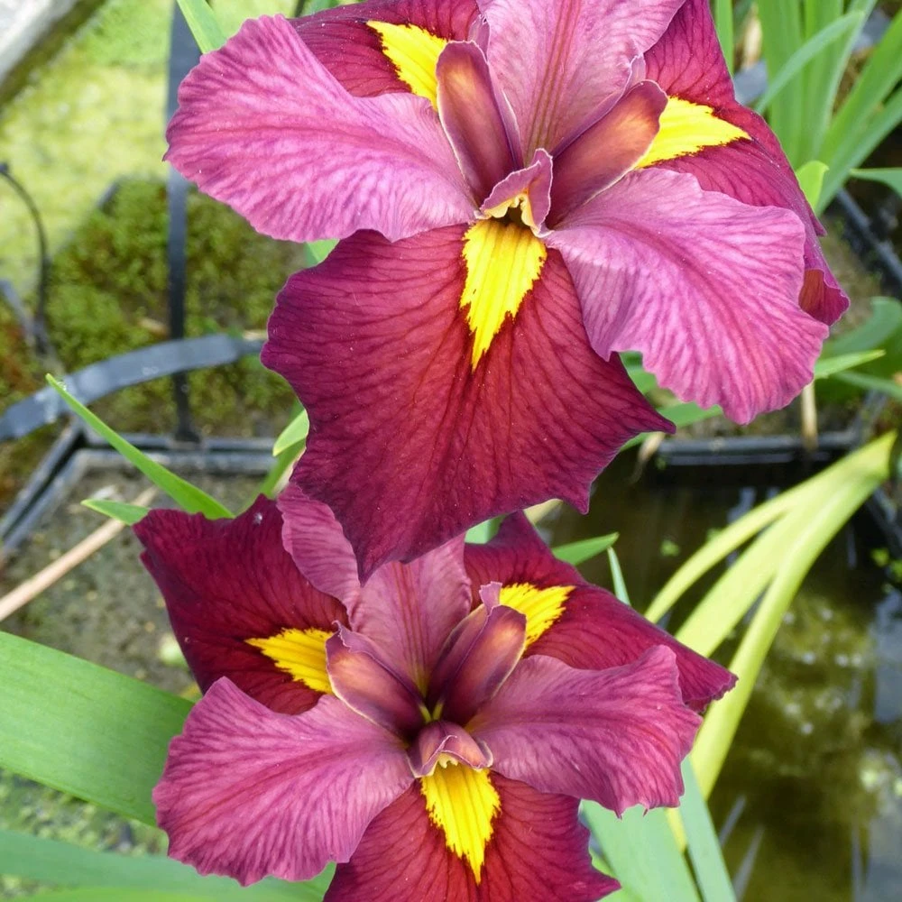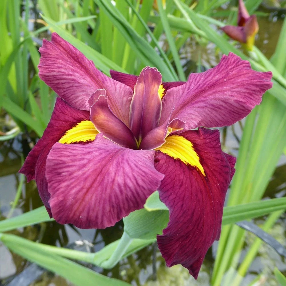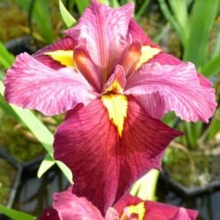 Velvety dark cherry red flowers with a yellow centre, it received the Mary Swords Debaillon Award, the highest given to a Louisiana iris. As with all iris the tubers are harmful if eaten. After foliage has died back in Autumn cut back to just above the water surface. If trimming left until spring take care not to damage emerging shoots.
