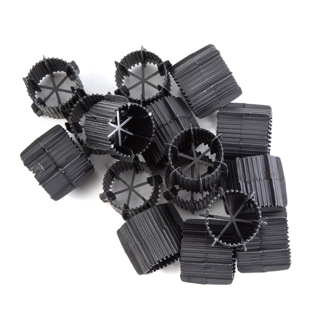 Kintama Black Bio Ring Filter Media from Kockney Koi is a sinking filter media with a huge surface area of 1920m² per m³. Kintama Black promotes increased colonisation of bacteria thanks to its innovative design which allows bacteria to develop and cultivate, both on the outside of the media in the traditional way but also on the inside of the media.