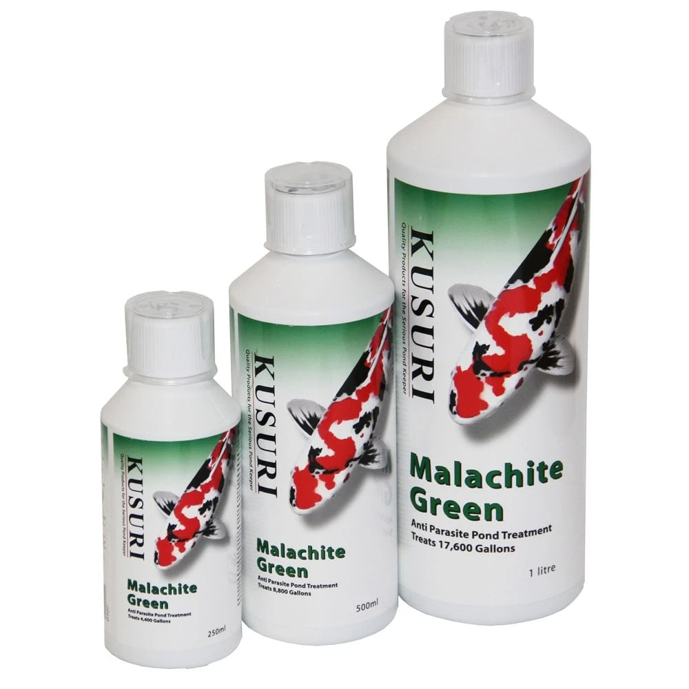 Kusuri Malachite Green is best used with Kusuri Formalin 30% for the effective treatment of most single cell parasites including White Spot, Costia, Chilodonella, Oodinium, persistent Fungus caused by Saprolengia and Protozoan Parasites.