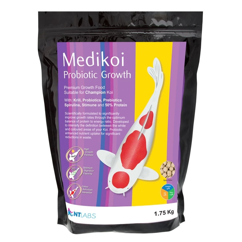 NT Labs Medikoi Probiotic Growth has been formulated over years of scientific research and development to bring you a professional diet to significantly improve the growth rate of champion Koi. The high growth formula uses the finest quality ingredients to promote vigorous food uptake and nutrient absorption. Combined with this the perfect protein to lipid ratio ensures maximum growth whilst maintaining the ideal body shape of champion Koi. The optimum balance of key ingredients ensures the lipids are used for energy so the 51% protein content can be used for healthy body tissue gain.