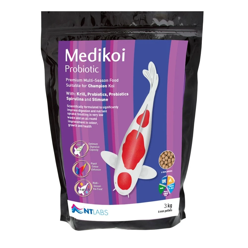 Medikoi Probiotic from NT Labs is a multi-season food, scientifically formulated to significantly improve digestion and nutrient uptake resulting in very low waste and an all round improvement in colour, growth and health. The highest quality ingredients in Medikoi Probiotic make the food extremely palatable and digestible.