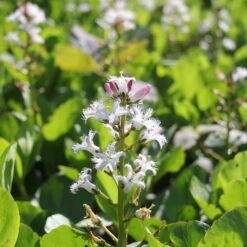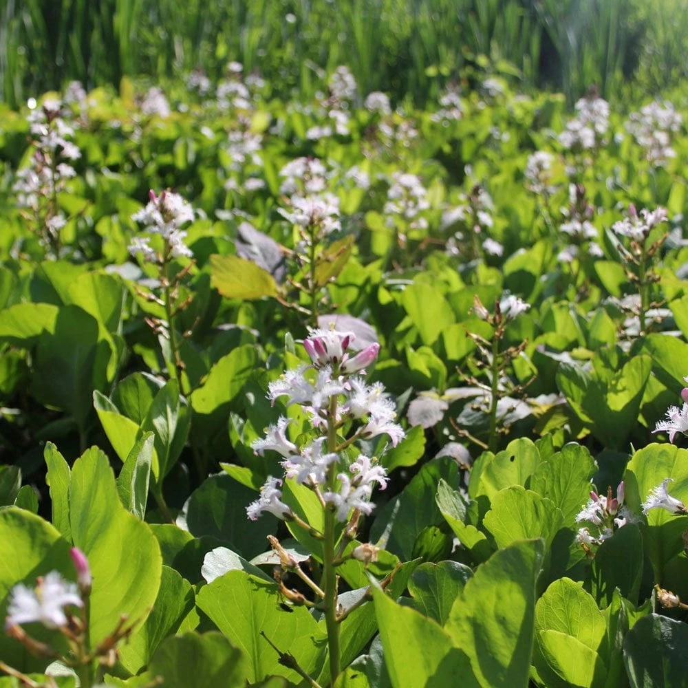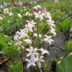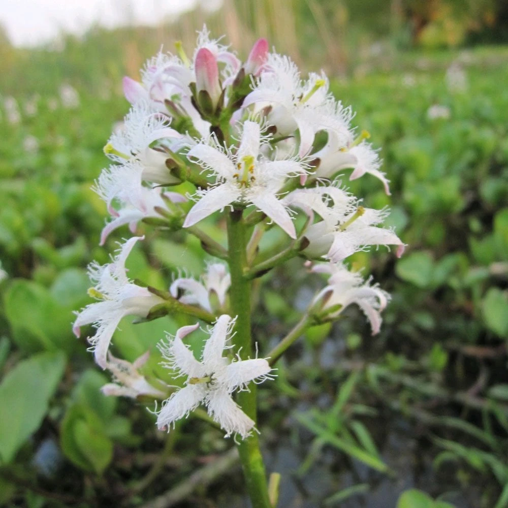 A rambling plant with trifoliate olive-green foliage that creeps over the surface of the water. The attractive white flowers are tipped with pink. An infusion of the roots used to be used as a tonic for fevers, gout and other complaints This plant creaps from where it is first planted. In summer growing shoots can be cut off to encourage branching and pushed into soil to propagate.