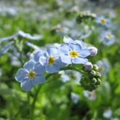 This delicate little native plant has numerous clusters of long flowering, small blue flowers which attract abundant pollinators throughout the summer. This plant can be trimmed as required at any time during the growing season but do not cut back in autumn as the growing tips are next years plants.