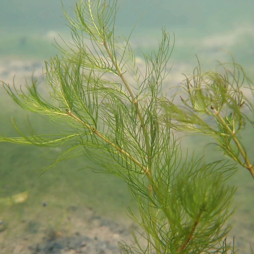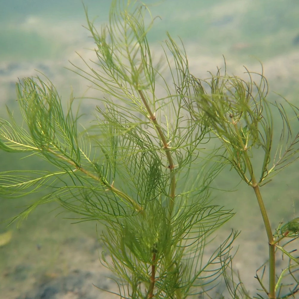 Very similar to Myriophyllum spicatum, but with slightly longer leaves. Can be dropped in pond as a weighted bunch but it benefits from being planted in soil. Once established this plant can grow as deep as 3m.