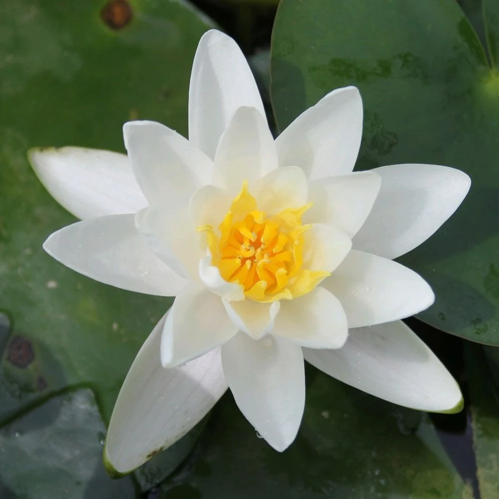 As it matures, the rich purple foliage of this elegant variety turns to an attractive green. The luxuriant flowers are brilliant white. This is a graceful, easy-to-grow plant, ideal for any medium to large pond. Plant in still water away from splashing fountains. Lower gradually so the leaves can stretch to the surface within a few days. Remove dead leaves and flowers during the growing season.