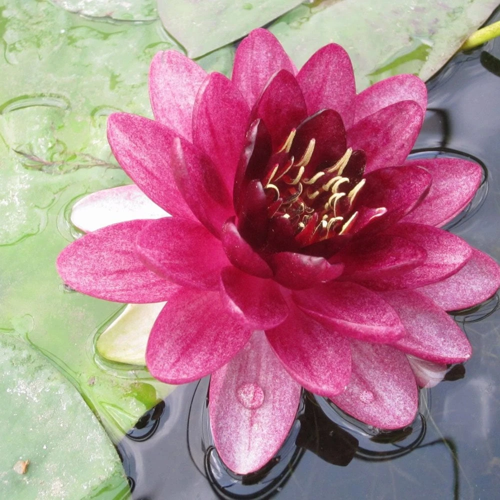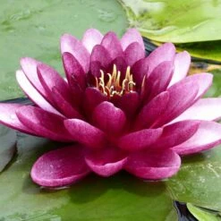 Floating gracefully on the surface of the pond in summer, the flowers of this outstanding water lily are an intense, plum colour. The emerging foliage has a striking bronze flush, turning green as it matures. This is one of the darkest of red water lilies. Plant in still water away from splashing fountains. Lower gradually so the leaves can stretch to the surface within a few days. Remove dead leaves and flowers during the growing season.