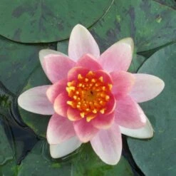 Intriguingly, the gorgeous blooms of this exceptional water lily are yellow when they first open, turning orange on the second day, and taking on a pinkish-red colour on the third. An excellent choice for any size of pond. Plant in still water away from splashing fountains. Lower gradually so the leaves can stretch to the surface within a few days. Remove dead leaves and flowers during the growing season.