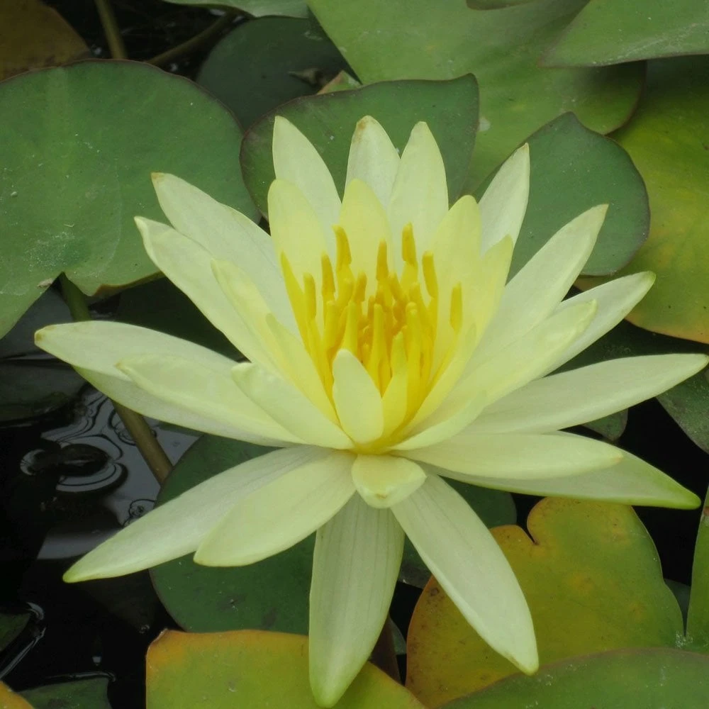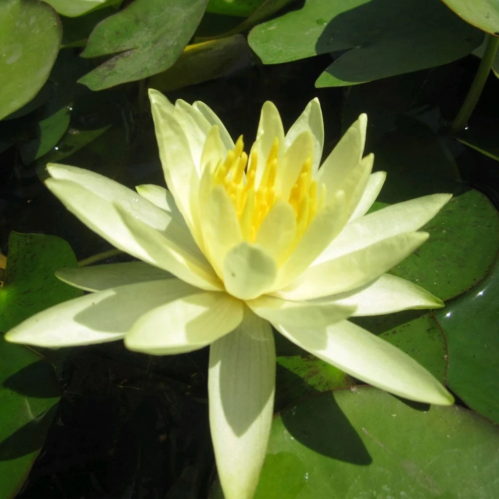 Canary-yellow flowers stand above the water. The foliage is very prolific, though the plant is not particularly free-flowering. Over time, it can grow into water up to 3 metres. It is classed as Viviparous as it occasionally grows new plants from its leaf stems. Plant in still water away from splashing fountains. Lower gradually so the leaves can stretch to the surface within a few days. Remove dead leaves and flowers during the growing season. It prefers full sun but is more tollerant to part shade than other lilies