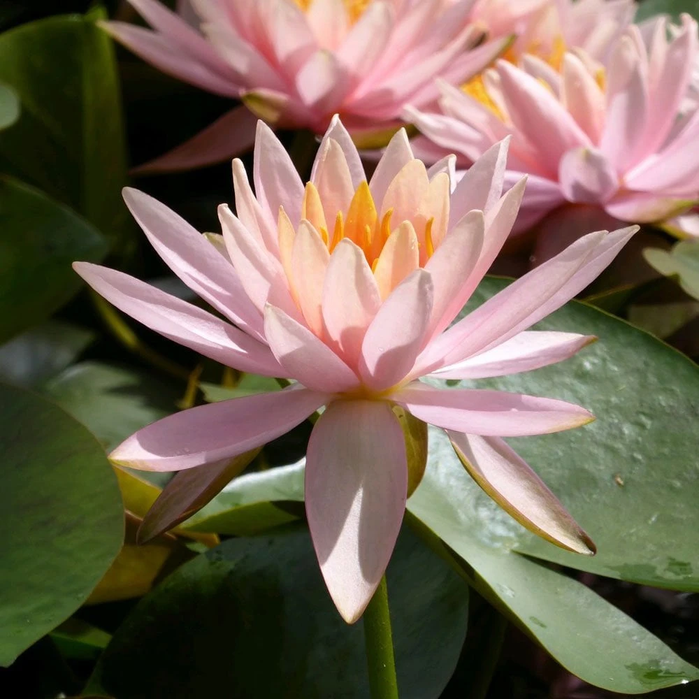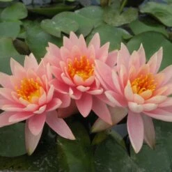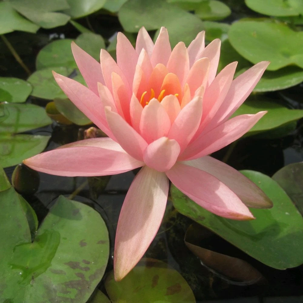 An excellent selection for medium and large ponds, this choice water lily is prized for its cactus-shaped, salmon-pink flowers. They stand elegantly above the water and continue to flower a full month after most lilies have stopped. Plant in still water away from splashing fountains. Lower gradually so the leaves can stretch to the surface within a few days. Remove dead leaves and flowers during the growing season.