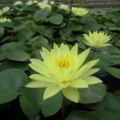 Standing just clear of the surrounding water, the deep lemon blooms of this graceful, free flowering water lily make an impressive sight in the summer pond. Plant in still water away from splashing fountains. Lower gradually so the leaves can stretch to the surface within a few days. Remove dead leaves and flowers during the growing season.