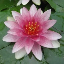 The unusually large, globe-shaped flowers of this lovely water lily are a deep pink that darkens gracefully as they age and surrounded by prolific green foliage. Plant in still water away from splashing fountains. Lower gradually so the leaves can stretch to the surface within a few days. Remove dead leaves and flowers during the growing season.