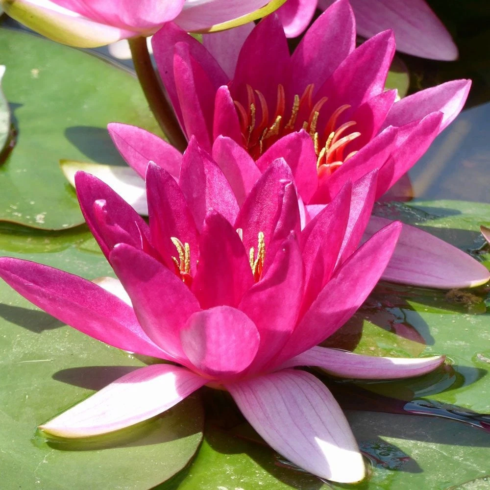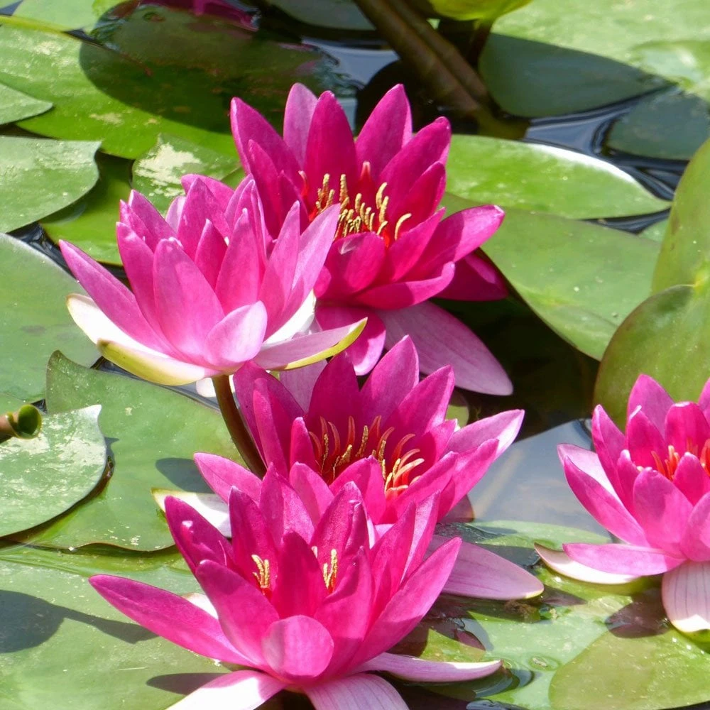 Water lilies are best placed in still water away from constant splashing and water flows from the likes of fountains and waterfalls. Lilies grow best in full sun but can tolerate some shade. When placing lilies into the pond make sure to lower them in stages to allow the plant to acclimatise to its new depth, this way the leaves can stretch to the surface during each stage of the descent.