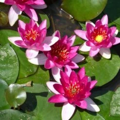 Bred in China, and introduced at the beginning of the 21st century, this highly attractive, free flowering water lily has petite red blooms and green foliage, edged with scarlet. Plant in still water away from splashing fountains. Lower gradually so the leaves can stretch to the surface within a few days. Remove dead leaves and flowers during the growing season.