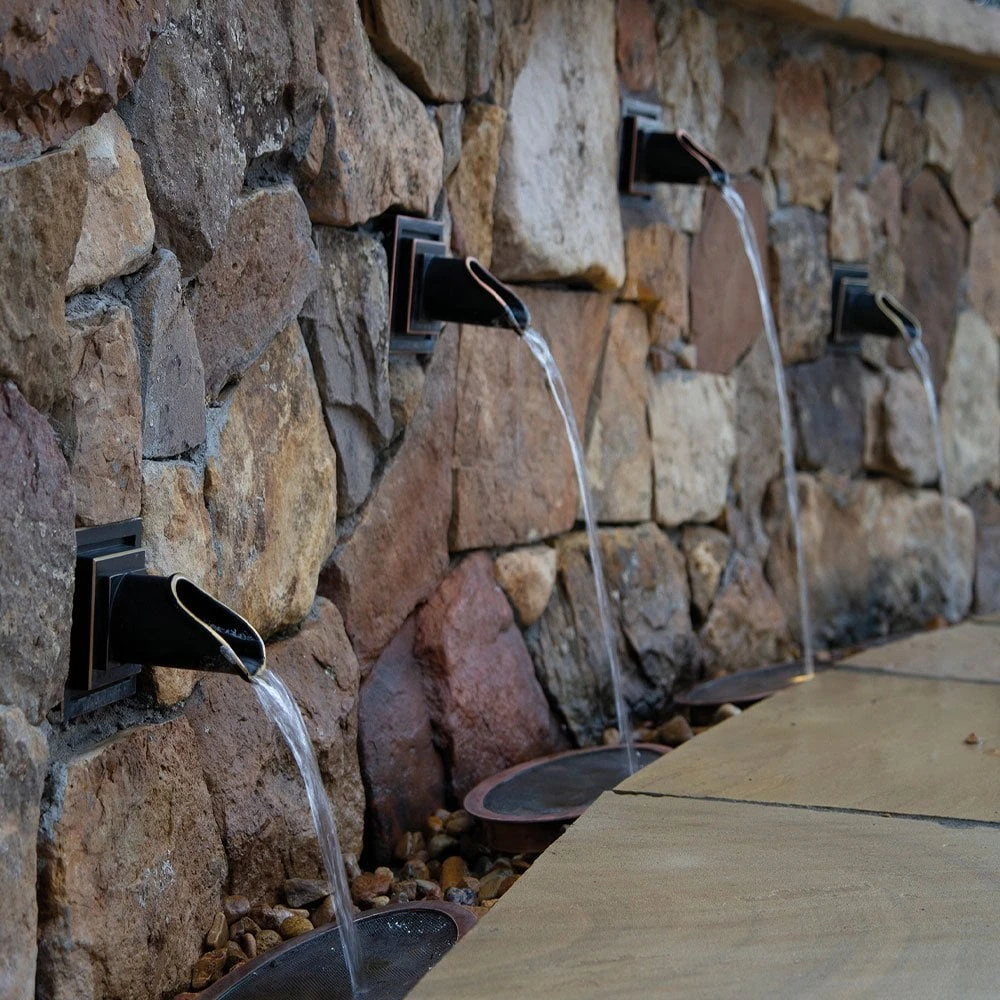 These geometric water spouts from Oase can be easily built into walls or columns to add a touch of style to both small and large surfaces. Thanks to the rear entry water inlet, the spouts are even suitable for mounting on narrow walls. All Oase Water Spouts have a built-in drip edge which ensures a smooth, consistent water pattern and also prevents water backflow.