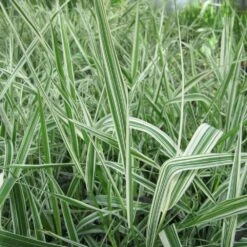 An attractive grass type aquatic with narrow leaves that are boldly striped with white, pale and dark green. Little maintenance is required. Trim just above the water surface after foliage has died back in Autumn to tidy.