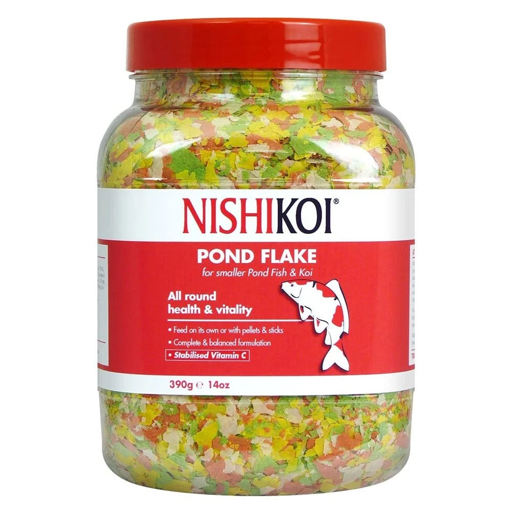 Nishikoi Pond Flake provides a complete fish food ideal for koi and other pond fish. This premium-quality flake food from Nishikoi is a perfect daily diet which can be fed on its own or mixed with pellets or sticks to add variety.