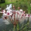 Pretty, sharply jagged toothed leaves divided into leaflets. The stem is a reddish brown vine-like structure from which the red-purple flowers extend. Little maintenance is required. Trim just above the water surface after foliage has died back in Autumn to tidy.