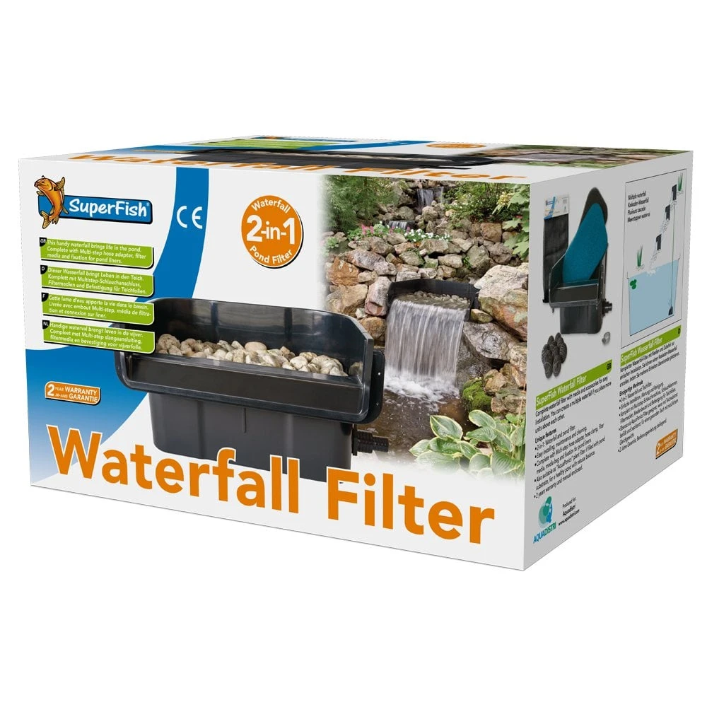 The SuperFish Waterfall Filter has an innovative 2-in-1 design, functioning as both a filter and waterfall. Manufactured from strong durable plastic, the Waterfall Filter is easy to install and provides an effective waterfall feature whilst the foam filters and bio media act as additional filtration for your pond.