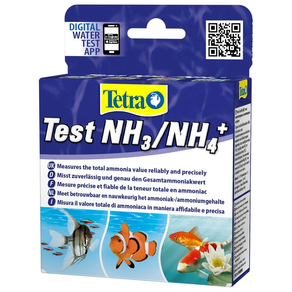 The Tetra Test Ammonia Water Test Kit is a simple to use kit for measuring the total Ammonia value (NH3/NH4+) reliably and precisely in freshwater aquariums, marine aquariums and ponds. The Tetra Ammonia Test Kit provides readings between 0.0 mg/l and 5.0 mg/l.