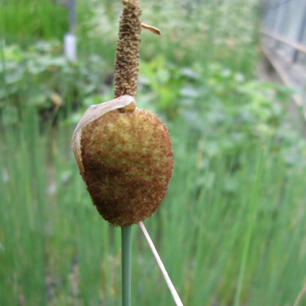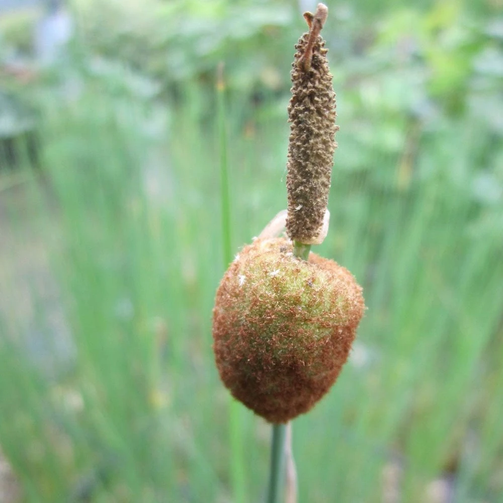 A miniature version, this has delicate round milk chocolate coloured brown seed heads and is ideal for small ponds. Attractive seed heads may be left all winter if desired but best cleared if they fall into the water. Cut back foliage before spring growth starts.