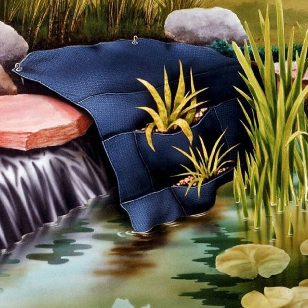 The Velda Overgrowing Mat is made from a strong finely-woven fabric material and is perfect for creating a planting space for aquatic plants, especially when there are no planting shelves within the pond. The woven planter measures 110cm x 105cm and features 3 rows of 6 planting pockets. Five ground fixing pegs are included for securing the Velda planter to the side of the pond.