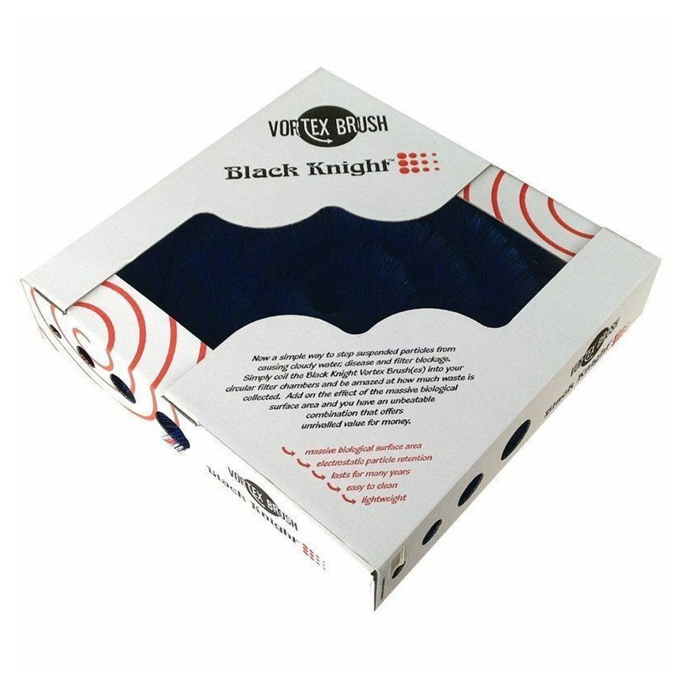 Black Knight Vortex Brushes provide a simple way to stop suspended particles from causing cloudy water, disease and filter blockage. Simply coil the Black knight Vortex Brush(es) into your circular filter chambers and be amazed at how much waste is collected. Add on the effect of the massive biological surface area and you have an unbeatable combination that offers unrivalled value for money.
