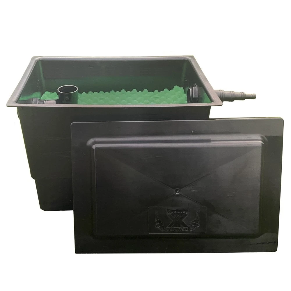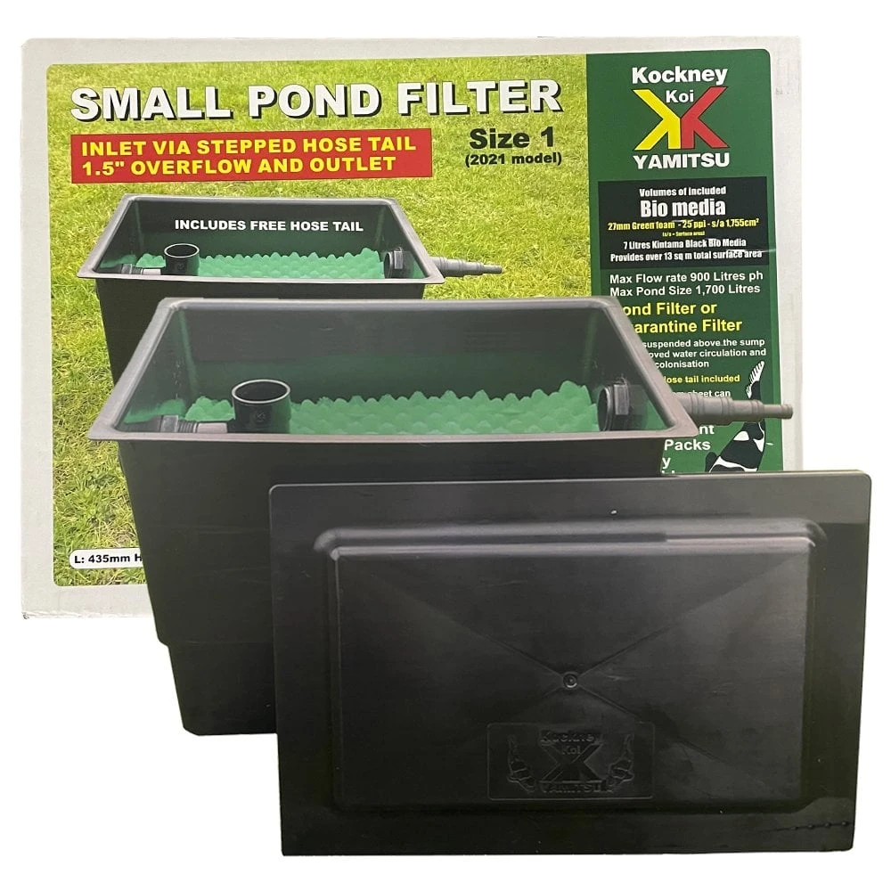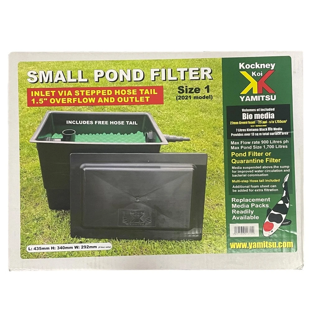 The Kockney Koi Yamitsu Small Basic Filter is ideal for fish ponds and quarantine tanks up to 1,700 litres in size. The Kockney Koi Small Basic Filter is quick, simple and easy to install and can even be partial buried if required. Featuring simple yet effective 2 stage mechanical and biological filtration the Yamitsu Small Basic Filter contains nearly 15m² of surface area for beneficial bacteria to live and thrive.